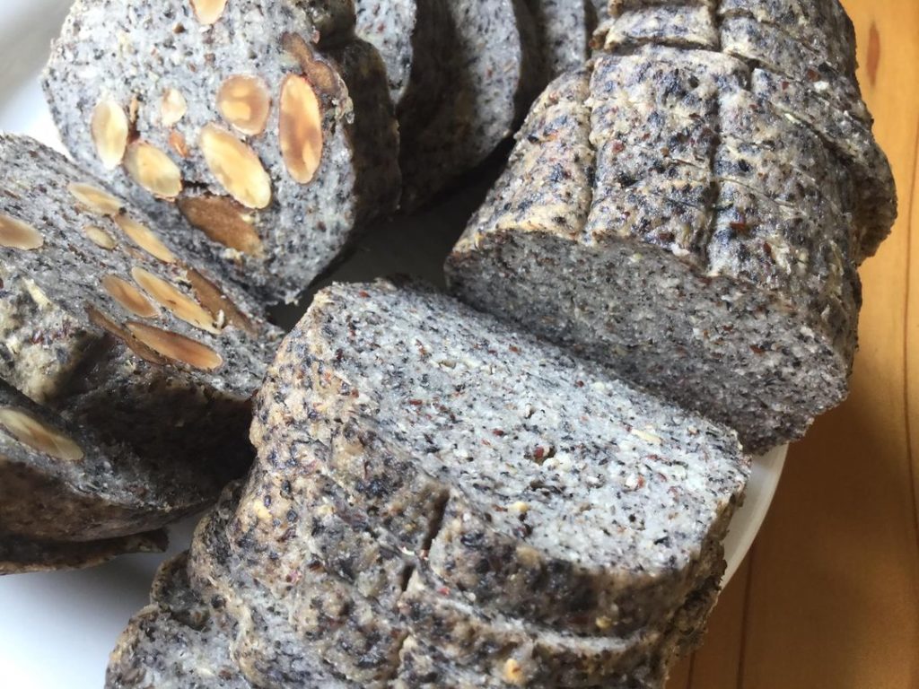 投稿日: 2019-08-232021-08-20ゴマのソイファイバーパン 今回は、黒ごまいっぱいのソイファイバーパンです。いつになく、しっとり、もっちり焼き上がりました。 乳酸菌で発酵させた大豆を圧力処理して焼き上げています。腸に負担のかかるレクチンやフィチン酸を緩和させています。岡山へは、月に2日間だけ、表町商店街でお出ししています。8月24日(土曜日)8月25日(日曜日)アンドロメダエチオピアコーヒーとご一緒にどうぞ。